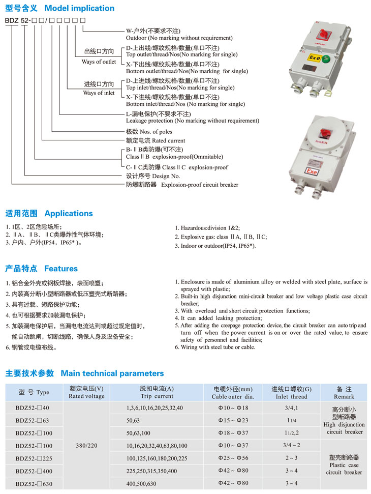BDZ52-系列防爆斷路器