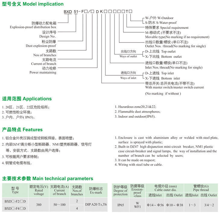 BXD51-F口D系列粉塵防爆動(dòng)力配電箱(動(dòng)力檢修)