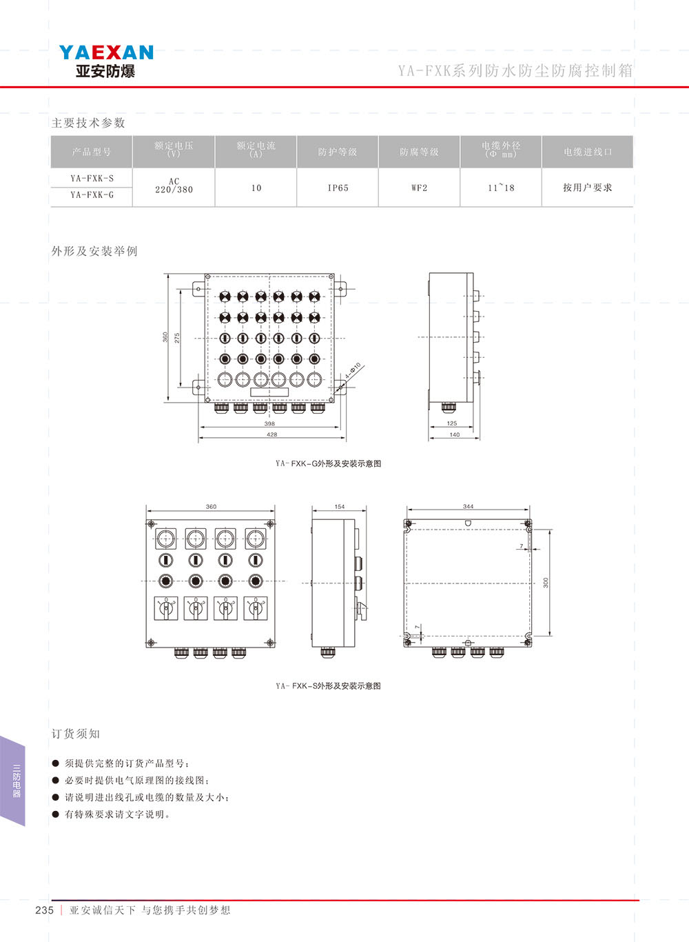 YA-FXK系列防水防塵防腐控制箱